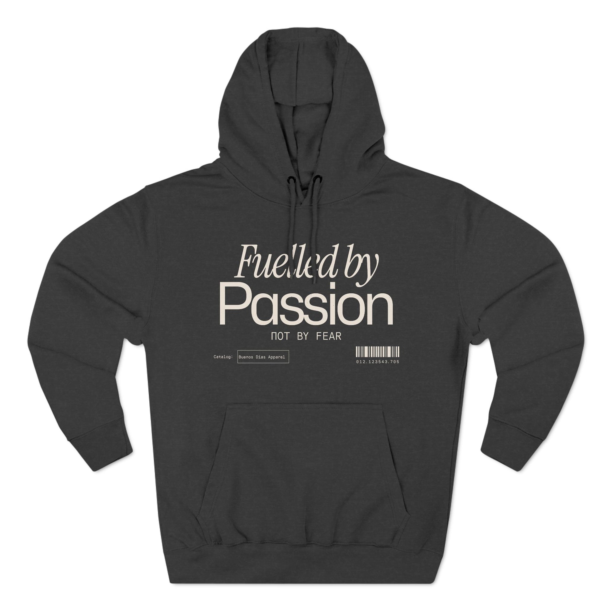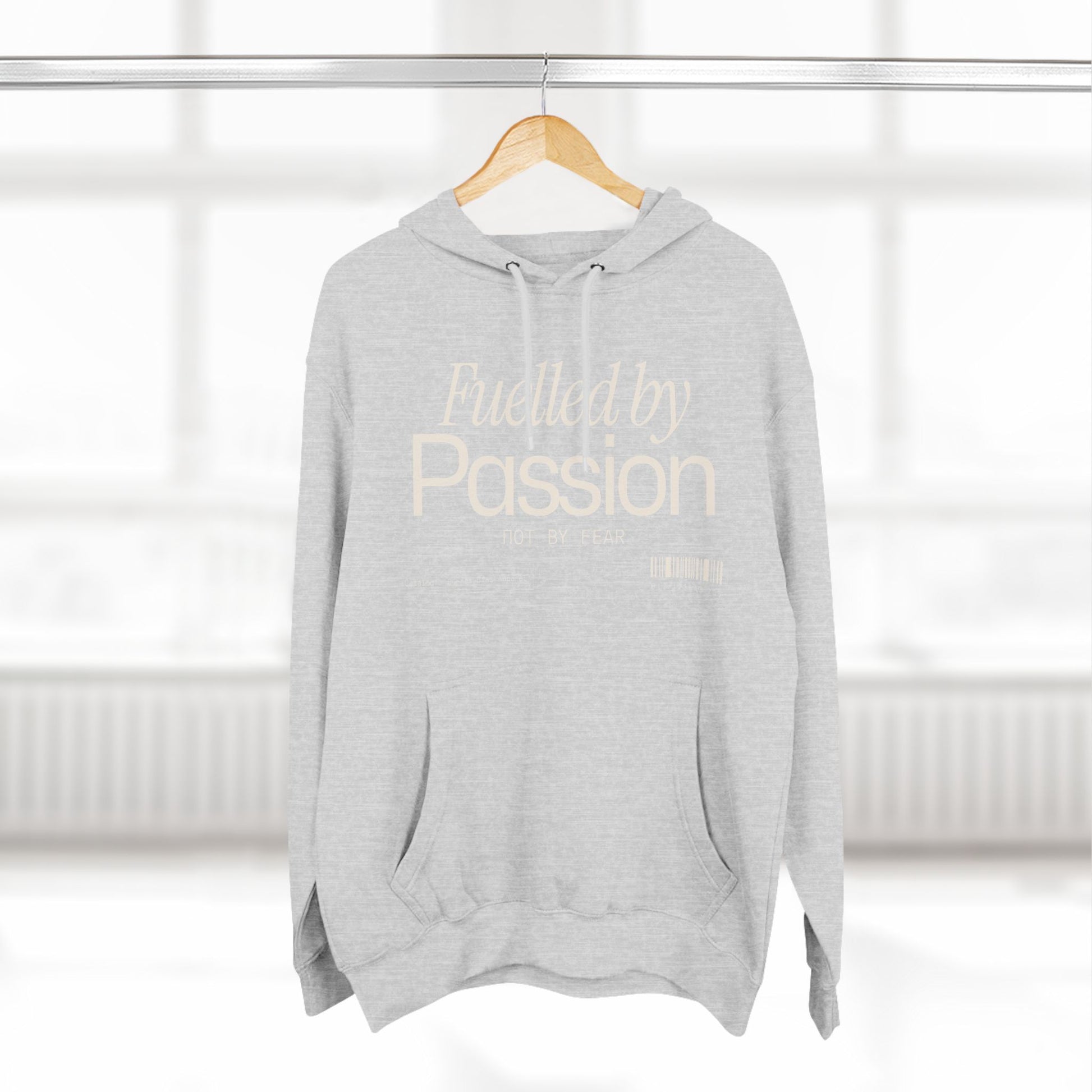 This hoodie boldly displays the empowering message "Fuelled by Passion, not by Fear." It's a reminder to embrace courage and drive, leaving fear behind. The statement print makes a strong, motivating statement wherever you go, perfect for those who live boldly and passionately.