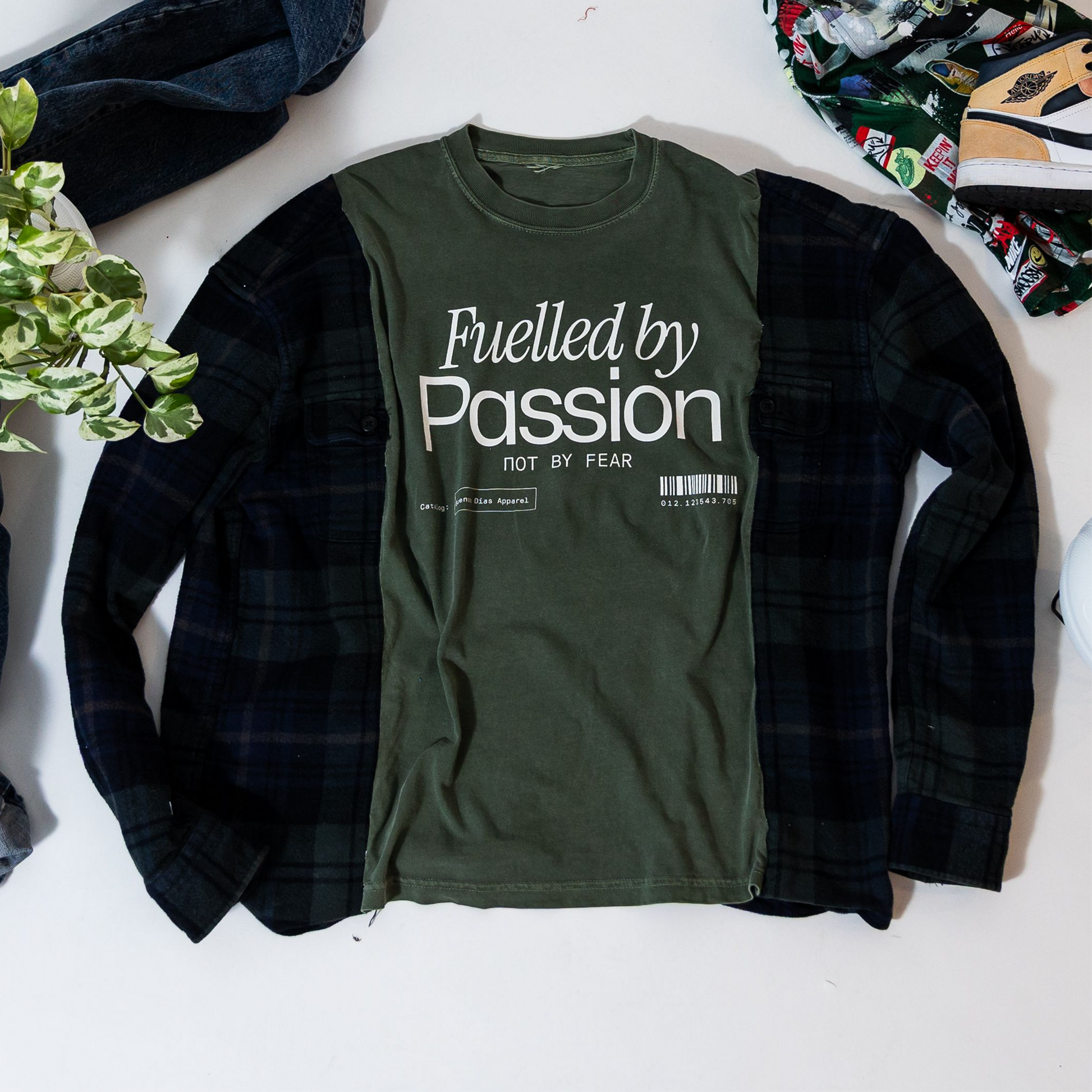 Upcycled Fuelled By Passion Oversized Flannel T-Shirt - Medium
